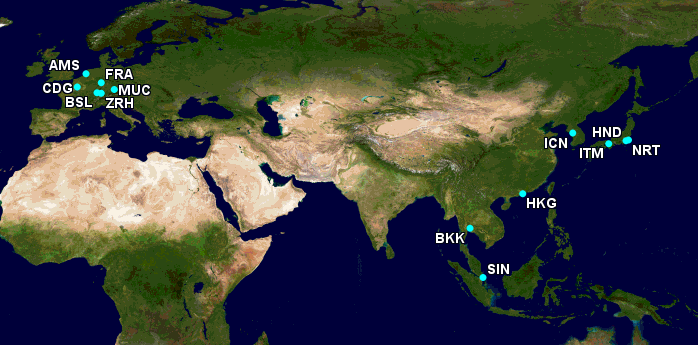 http://www.gcmap.com/mapui?P=BSL,ZRH,AMS,FRA,MUC,CDG,BKK,HKG,HND,NRT,ITM,ICN,SIN&MS=bm&MP=rect&PC=%2300ffff&PW=4&RS=outline&RC=%2300ffff&RW=4&DU=km